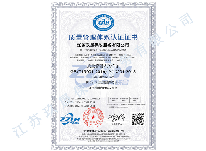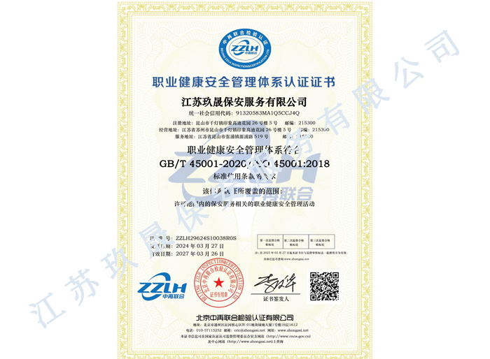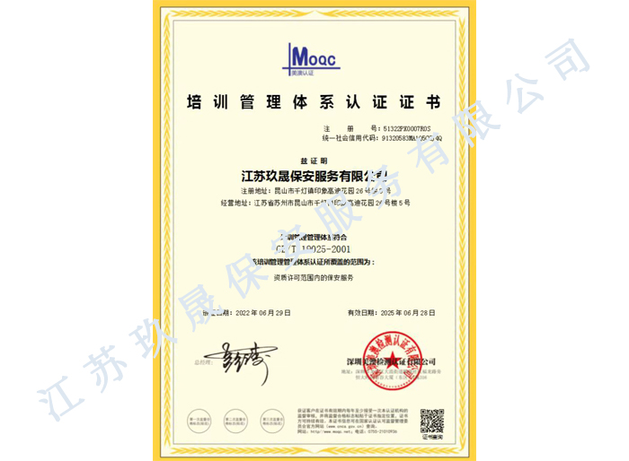 江蘇玖晟保安服務有限公司成立于江蘇省昆山市千燈鎮。注冊資金:2000萬,是擁有省公安廳頒發的保安服務許可證的企業【蘇公保服20170046】,也是昆山市保安協會常務理事單位。