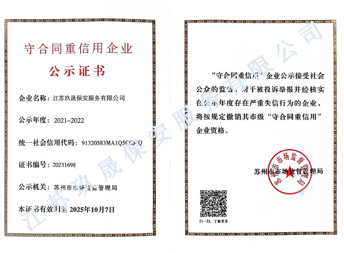 - 自從蘇州保安公司人員進駐,管理僅僅有條,安全整潔都上了好幾個臺階! ---綠地**** 2022-06-30