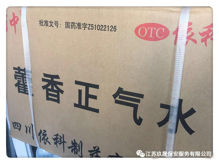 Kunshan Security Company Jiusheng is equipped with heatstroke prevention and cooling items to be carried with you, Huoxiang Zhengqi oral liquid, refreshing oil, wind oil, salt and soda, etc., which will be distributed to all project personnel. Please pay more attention to safety when you go out. Pay attention to heatstroke prevention!