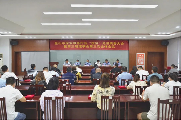 On the morning of August 10, the Kunshan Security Service Industry Association held the Kunshan Security Service Industry "Anti-epidemic" Advanced Commendation Conference and the 3rd Plenary Meeting of the 3rd Council. Municipal Public Security Bureau Public Security Brigade Instructor Shen Feng, Deputy Chief Xu Hui, Security Management Squadron Lin Renqing, Zhang Jun, Security Association President Jin Yonglin and governing units attended the meeting. Jiusheng Security was also honored to be invited, and Mr. Zhang Hailong, the deputy general manager of our company, attended the meeting on behalf of.