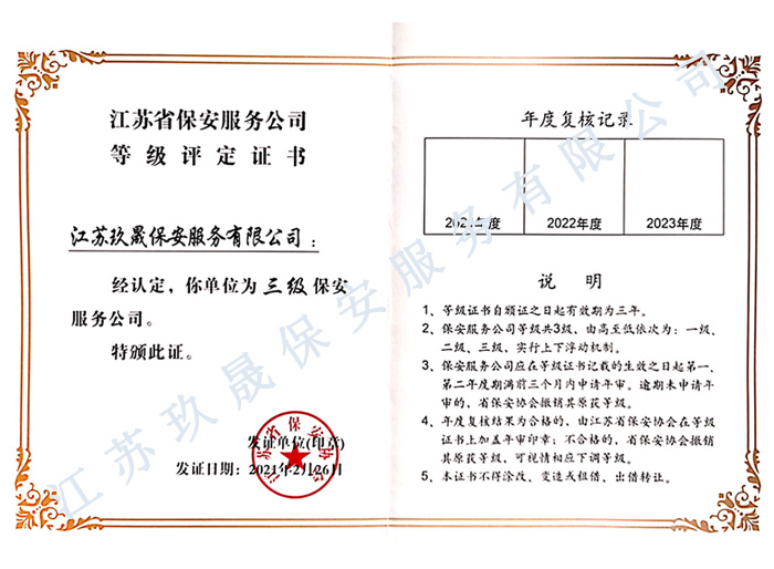 上一篇:江蘇省保安服務公司等級評定證書(三級保安服務公司)