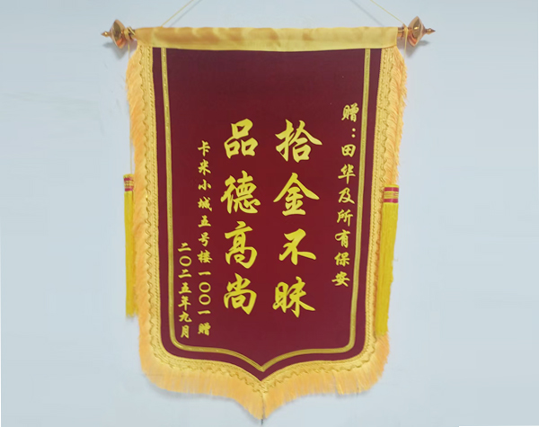 拾金不昧!蘇州保安公司玖晟保安獲業(yè)主錦旗一面錦旗,一份認可!近日,花橋綠地雅苑的業(yè)主張女士,專程...