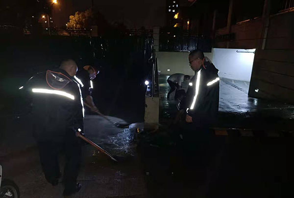7月25開始,因受臺風(fēng)影響突降暴雨,面對極端惡劣天氣,昆山保安公司玖晟各項目部第一時間啟動應(yīng)急管理預(yù)案,全力以赴清理倒伏樹木,雨、污水井積水,同時組建多支應(yīng)急隊伍,預(yù)防因天氣原因造成的突發(fā)狀況。