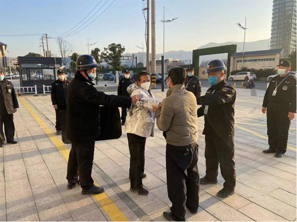 為了保證保安員緊急情況發(fā)生時能得到盡快、妥善處理,降低安全風險,減少影響擴大范圍,切實保障業(yè)戶家人的生命、財產等安全,提高了秩序員面對此類突發(fā)事件應急處置能力,維護項目區(qū)秩序安全。根據年度培訓計劃我司瞰湖廣場項目于2023年1月31號早7:00在9號樓1單元前消防登高場地組織開展《發(fā)生打架斗毆應急處置》實操模擬演練及應急預案。