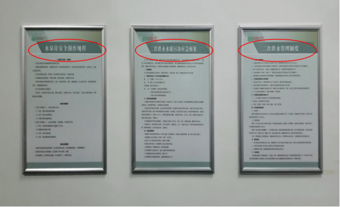 3.上墻文件為二次供水管理制度、應急預案、以及操作規(guī)程。