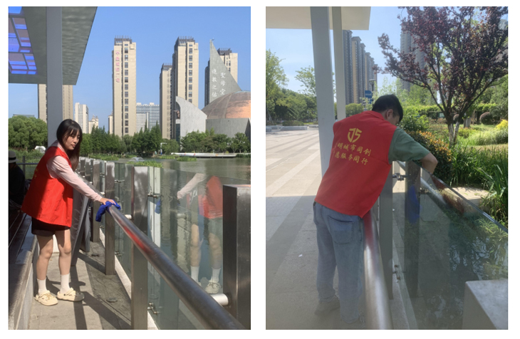 活動當天,志愿者們帶著工具,早早地來到公園。在進行了一次簡短的交流后,志愿者們分成若干小組,身穿統(tǒng)一的服裝,積極迅速地投入到了公園的環(huán)?;顒又?,在活動過程中,志愿者們發(fā)現(xiàn)了不少隱藏在角落里的污漬和污垢,他們耐心細致地清理,將公園內(nèi)的公共設(shè)施擦拭得干干凈凈,在公園道路與綠化中見到的垃圾也全部清理,讓公園煥然一新。
