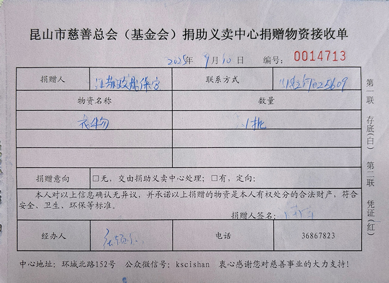 秋意漸濃,暖意先行。2025年9月10日,我司發(fā)起公益行動(dòng),向昆山紅十字會(huì)捐贈(zèng)一批精心整理的愛心衣物,為有需要的人送上秋日暖意,以實(shí)際行動(dòng)彰顯安保行業(yè)的社會(huì)責(zé)任與擔(dān)當(dāng)。